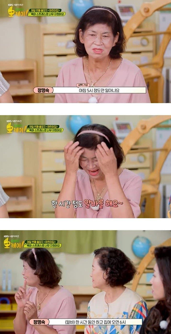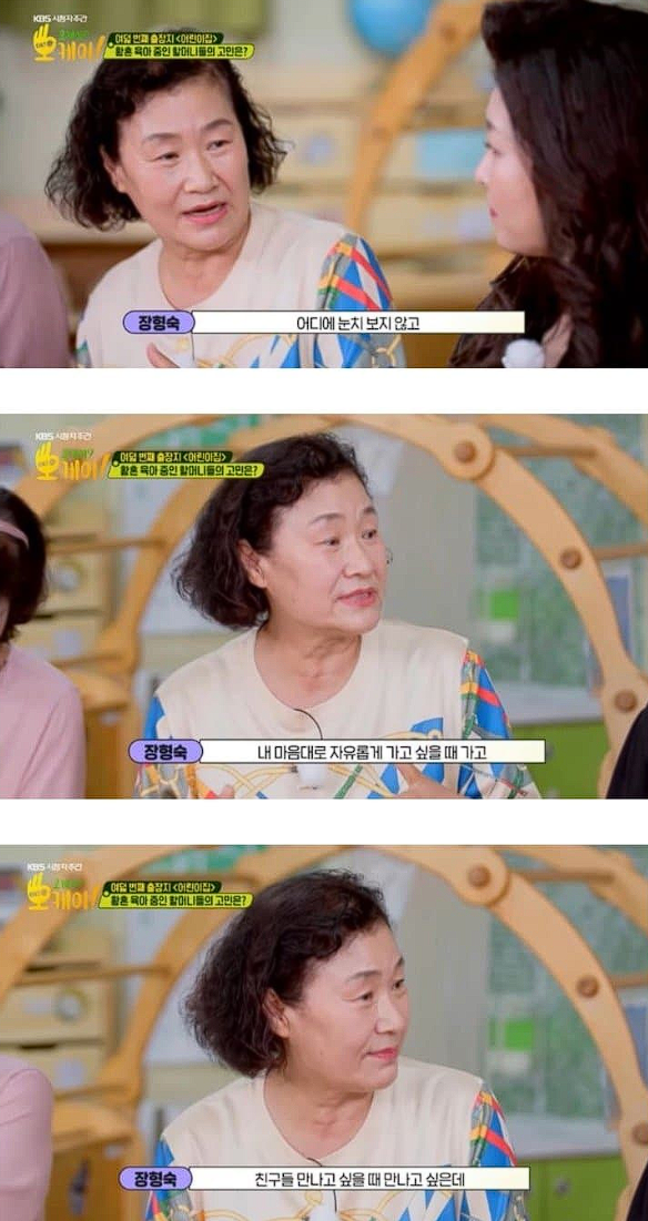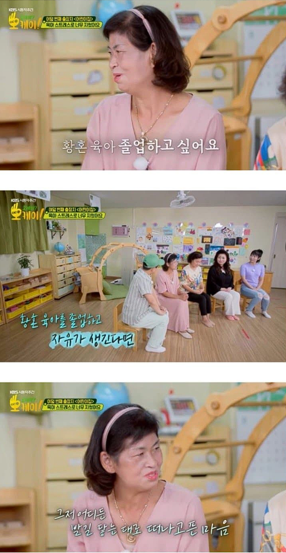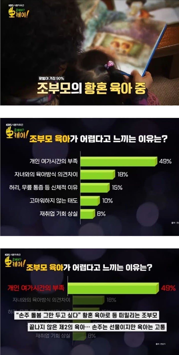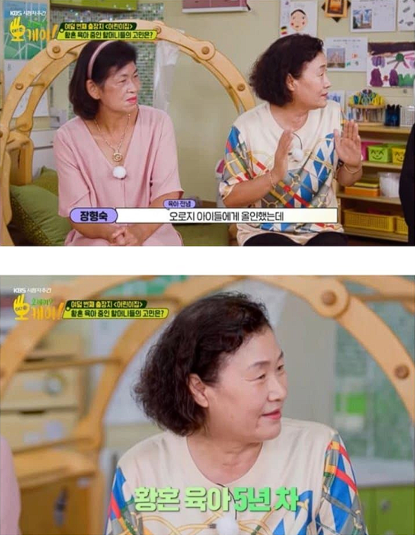 할머니들은 육아는 하면서 "자유시간이 없어졌다. 육아로 모든 걸 포기햇다. 친구들과 소통이 단절되어서 소외감을 느끼는 등 많이 힘들다" 며 하소연을 하게 되었습니다.